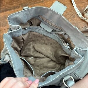 • 👜 Genuine Leather: Soft, pebbled leather in a cool-toned light gray—elevated and durable