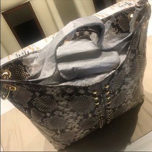 Michael Kors Astor Studded Leather Carryall Large Satchel Bag Snakeskin