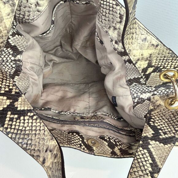 Michael Kors Astor Studded Python Snakeskin Tote Bag Shoulder Purse Beige Black