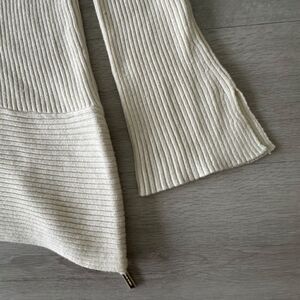 This beautiful sweater is in EUC. The sleeves flare and have a split. The hem is angled with the left side being longer with a gold zipper.