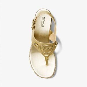 Michael Kors Aubrey Cutout Leather Wedge Sandal Pale Gold