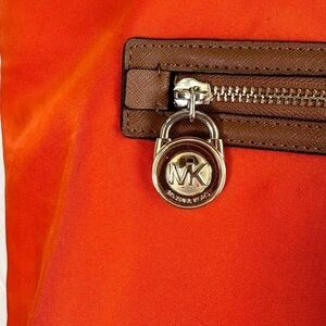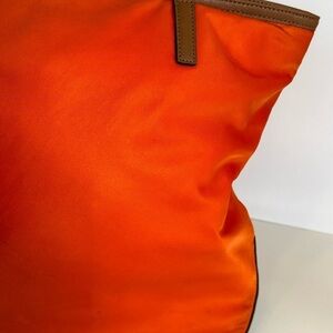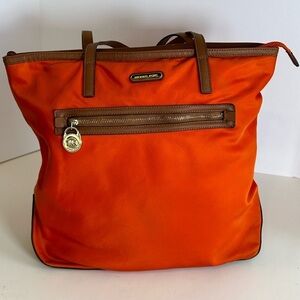 Michael Kors Autumn Orange Nylon Tote with Brown Leather Trim & Gold Hardware
