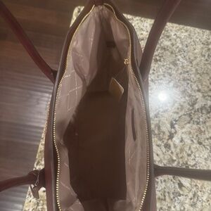 Extra-Large Leather And Suede Tote Bag with matching wallet. Color oxblood dark red, like new, used twice. Dimensions are in pictures