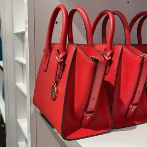 Michael Kors Avril Small Leather Top-Zip Satchel Color Flame