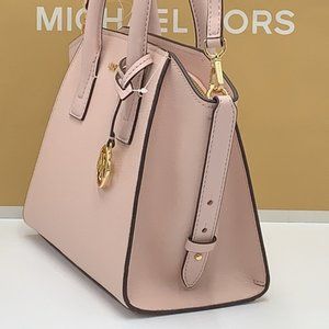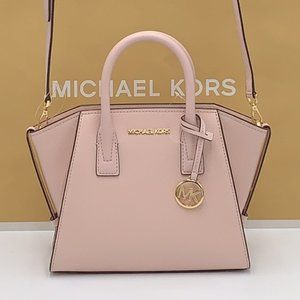 Michael Kors Avril Small Leather Top-Zip Satchel Powder Blush color