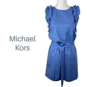 Michael Kors Azure Blue Ruffled Dress With Fabric Belt NWOT