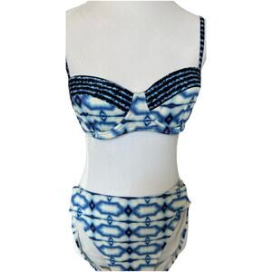 Michael Kors BLUE MULTI Summer Breeze Tile-Print Underwire Bikini Set 2 Small