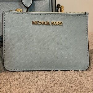 Michael Kors Baby Blue Leather Mini Crossbody Purse Bag with Matching Wallet