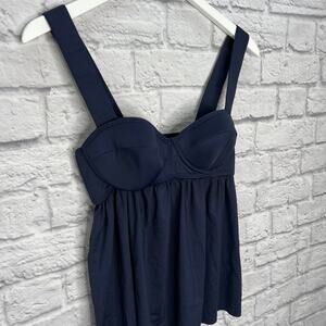 Michael Kors Baby Doll Tankini Swim Top Size S Navy Blue New Slimming Underwire