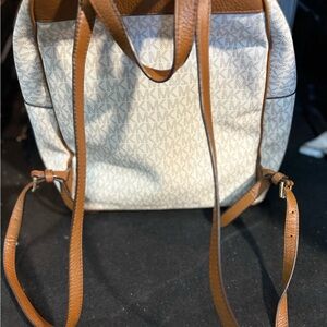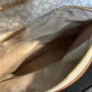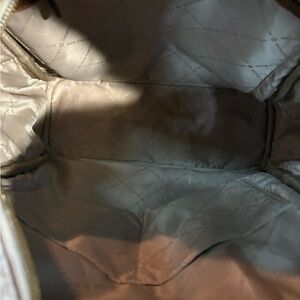 Elegant quilted interior. Perfect for organizing essentials. Signature style. Has small stains inside bag ( not noticeable) in good condition and adjustable straps.
