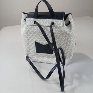 Michael Kors Backpack Junie Medium Logo Navy Blue Cream Leather Cinch New