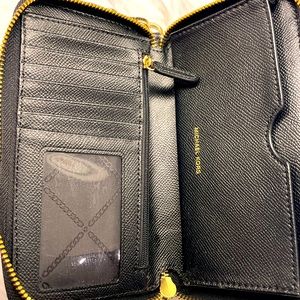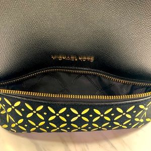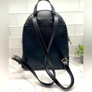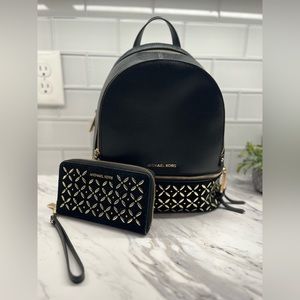 Like new, pristine condition! Michael Kors black backpack purse with matching wristlet. Purse measures 11” x 10” x 5.25”.