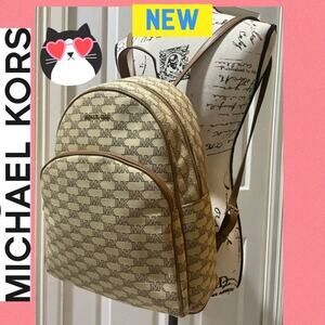 Michael Kors Backpack canvas leather Tan mk all over versatile carry all