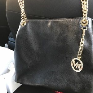Black bag! Used one time and decided it wasn't my style. Has three separate compartments on the inside!