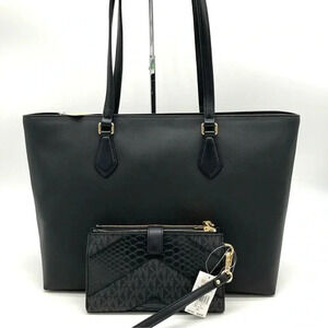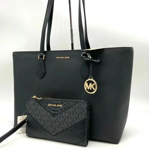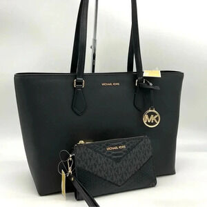 Michael Kors Bag Large Sheila Mf Tote Bag & Large Double Zip Wallet Black/Gold