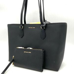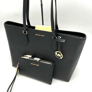 Michael Kors Bag Large Sheila Mf Tote Bag & Large Double Zip Wallet Black/Gold