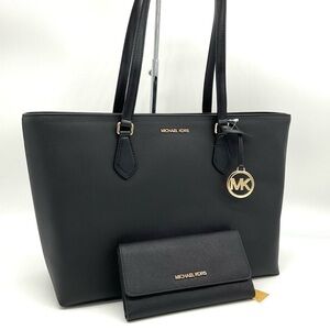 Michael Kors Bag Large Sheila Mf Tote Bag & Large Trifold Wallet Black/Gold
