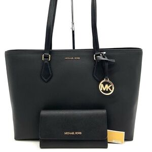 Michael Kors Bag Large Sheila Mf Tote Bag & Large Trifold Wallet Black/Gold