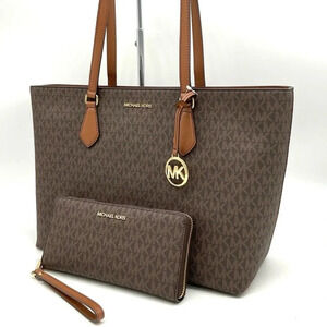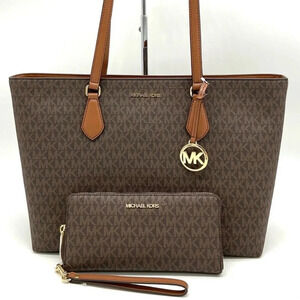 Michael Kors Bag Large Sheila Mf Tote & Continental Wallet Wristlet Brown/Gold