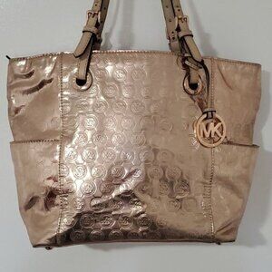 Michael Kors Bag Rose Gold Patent Leather Tote Shoulder Handbag Purse WOMEN'S