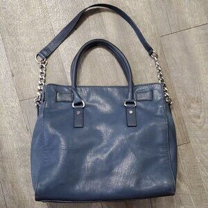 Michael Kors Bag Tote Satchel Shoulder Handbag Purse Blue Leather