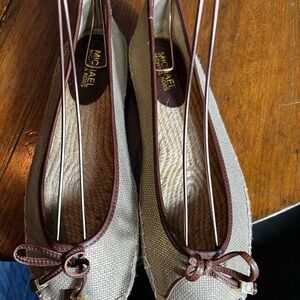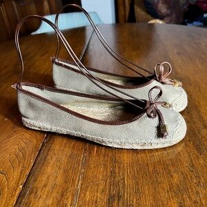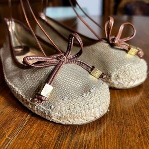 Michael Kors Ballet Flats Womens 10 Gold Meg Espadrille Weave Canvas