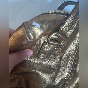This Michael Kors Barrel handbag is a stylish and chic accessory for any woman. The gold studded detailing adds a touch of glamour, while the barrel shape provides ample space for all your essentials.