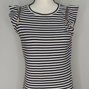 MICHAEL Michael Kors Cotton Stripe Zipper Accents Sleeveless Dress | Size XS
