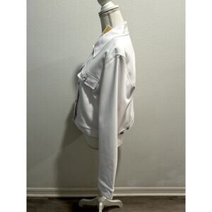 Whether you're dressing up or down, this Michael Kors cropped white jacket is a must-have essential for any fashion-forward wardrobe.