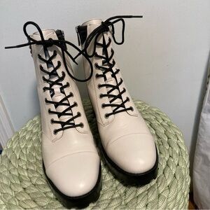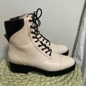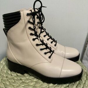 Michael Kors Bastian Cream/ Black Leather Lace Up Military ll Combat Boots