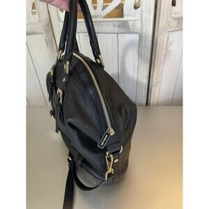 Michael Kors Bedford Bowling Medium Black Leather Satchel Bag Crossbody Strap