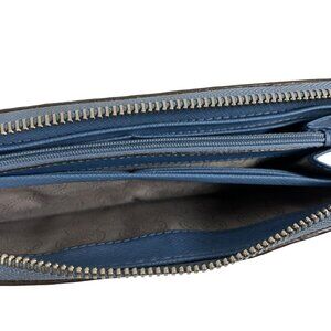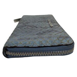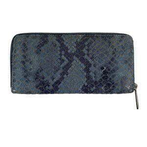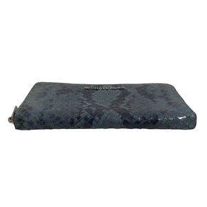 Michael Kors Bedford Denim Blue / Silver Python Leather Zip Around Wallet