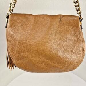 Michael Kors Bedford Handbag Purse Tassel Crossbody Tan Pebble Leather Gold