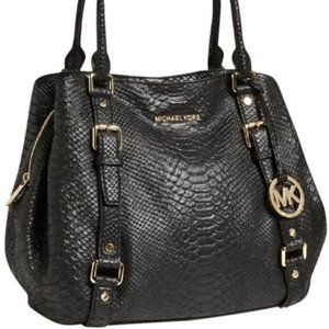 Animal attraction. Tap into the exotic trend with this posh python print satchel from MICHAEL Michael Kors. Rendered in rich slightly distressed leather with signature detailing, the pocket-lined interior stows essentials with ease.