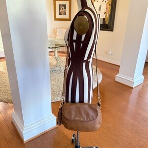 Michael Kors Bedford Tassel Leather Convertible Shoulder Crossbody Bag Tan