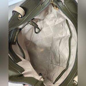 Michael Kors Bedford Medium Soft Leather Tote in Green with top zip closure.