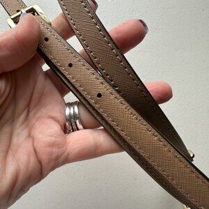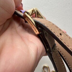 Michael Kors Beige Neutral Saffiano Leather Purse Shoulder Strap Gold Tone