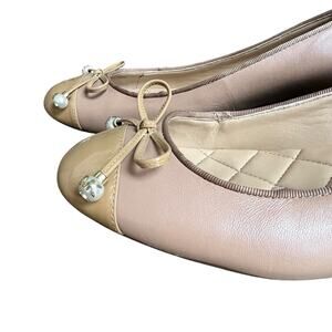 Michael Kors Beige Tan Gia Block Heel Pump Size 8 Bow Cap Toe Patent