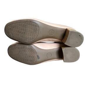Michael Kors Women's Beige Tan Gia Block Heel Pump Size 8 Bow Cap Toe Patent