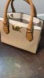 Chic Michael Kors top handle bag in beige and tan. Features sturdy handles and signature MK logo. Ideal for everyday use. Great condition besides slight wear on handles