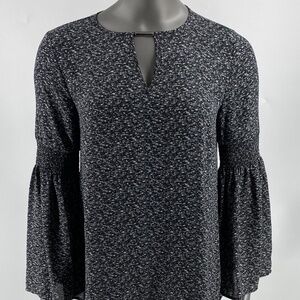 Michael Kors Bell Sleeve Keyhole Neck Cut Out Black Blouse Size S