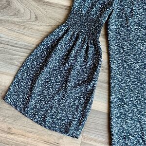 Add a touch of boho charm to your everyday wardrobe with this Michael Kors long sleeve blouse, in soft black and white tones. Designed with statement smocked bell sleeves, a subtle keyhole neckline, and a lightweight drape, this top pairs effortlessly with denim or tailored trousers for both casual and work-ready looks.