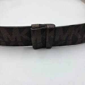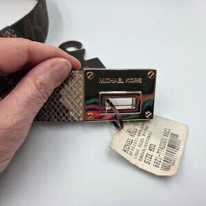 Michael Kors Belt Womens Medium Brown MK Logo Python Print Adjustable Slide NEW