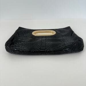 Michael Kors Berkley Clutch Leather Bag Snakeskin Python Pattern Black/Gold