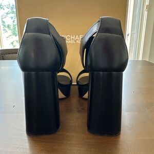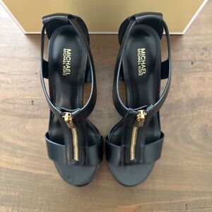 Michael Kors Berkley Mid Sandal Black Leather Platform Gold Zipper Women's 6.5