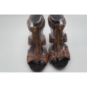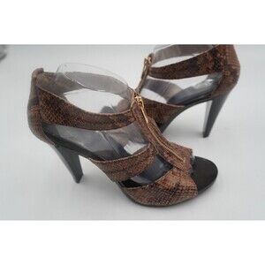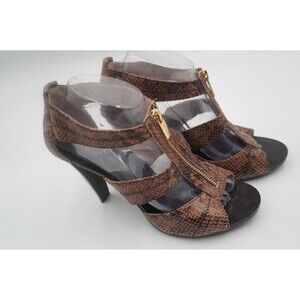 Michael Kors Berkley T-strap Chocolate Embossed Heel Sandals Front Zipper Sz 9M