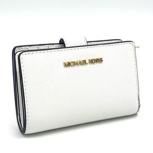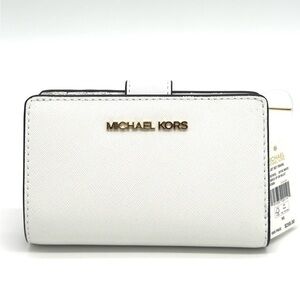 Michael Kors Bifold Zip Chain Wallet Optic White