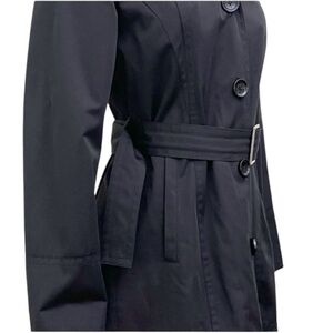 This classically styled trench coat is made of a polyester cotton blend. A modern twist on an outerwear staple, this trench coat features a waist-cinching belt with woven “KORS” lettering. It has all the details that make it a classic, including buckled cuffs. Adjust the drawstring hood to keep the wind at bay. The cuffs have buckles with straps that adjust. The belt has buckle that can be worn tied as show in picture or buckled. One button is loose.