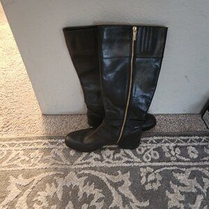 Leather boorsChic black ankle boots featuring a gold MK logo. Perfect for any outfit.