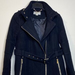 Michael Kors Black Belted Coat with Gold Accents Size M